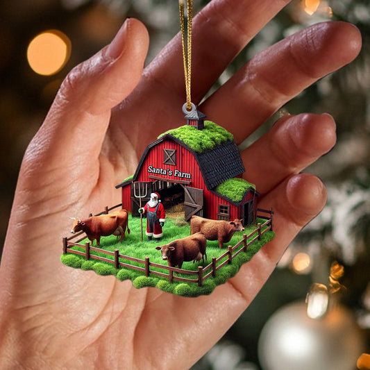 Santa's Farm Christmas Ornament, Personalized Ornament