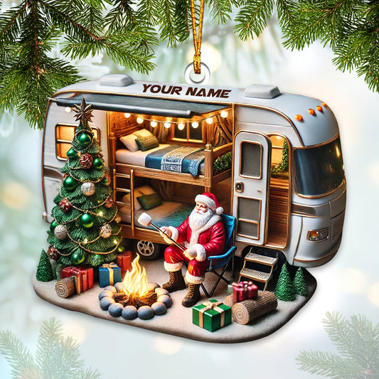 Santa Trailer Christmas Ornament, Personalized Ornament