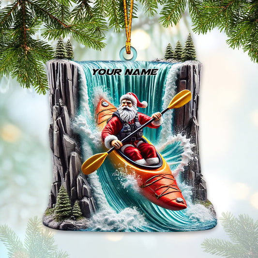 Santa White Water Rafting Christmas Ornament, Personalized Ornament