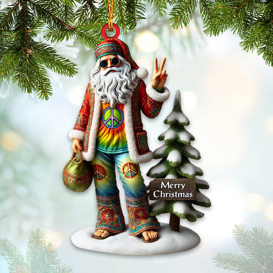 Santa Wearing Hippie Christmas Ornament, Personalized Ornament