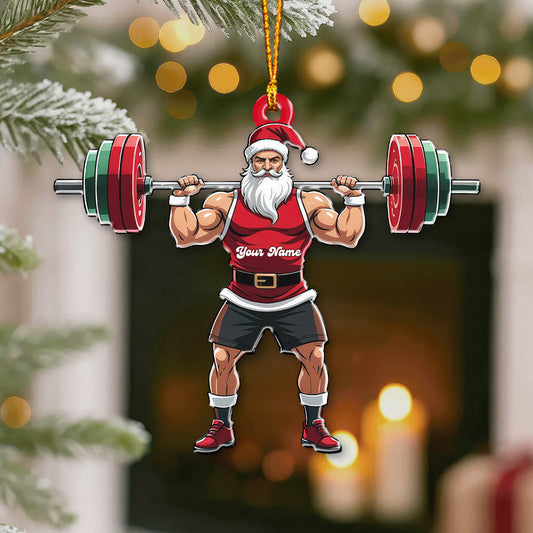 Weightlifter Santa Christmas Ornament, Personalized Ornament