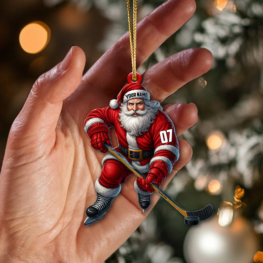 Christmas Hockey Santa, Home Decor, Christmas Ornament, Personalized Ornament