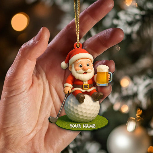 Christmas Golf And Beer Santa, Home Decor, Christmas Ornament, Personalized Ornament