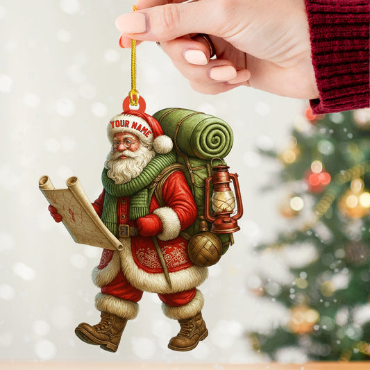 Christmas Hiking Santa, Home Decor, Christmas Ornament, Personalized Ornament