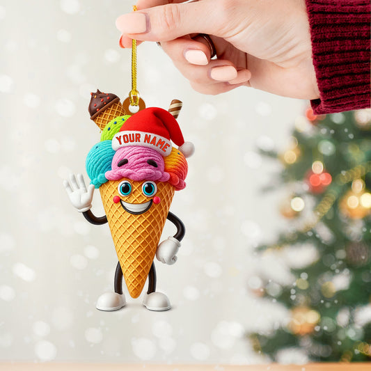 Christmas Ice Cream Santa, Home Decor, Christmas Ornament, Personalized Ornament