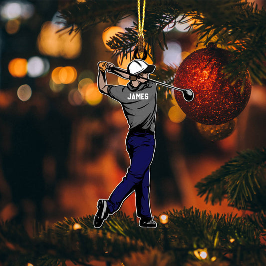 Christmas Golfer - Christmas Gift For Family, Custom Name - Personalized Acrylic Ornament