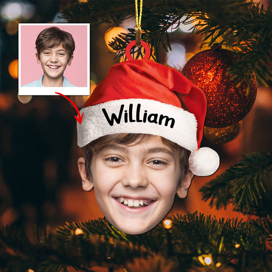 Christmas Hat - Christmas Gift For Family, Custom Photo And Name - Personalized Acrylic Ornament