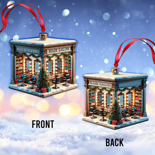 Custom Name Hair Salon Ornament, Hair Salon Christmas Decoration