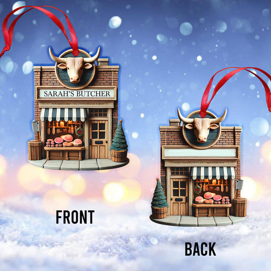 Custom Name Butcher Store Ornament, Butcher Store Christmas Decoration