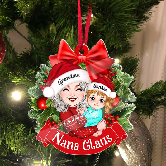 Nana Claus, Grandma And Kid Christmas Decor - Personalized Acrylic Ornament - Gift For Family