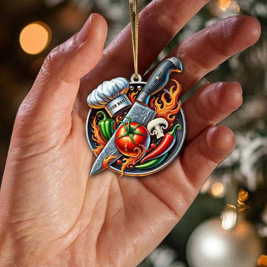 Custom Name Chef Ornament, Christmas Gift for Cooking Lover
