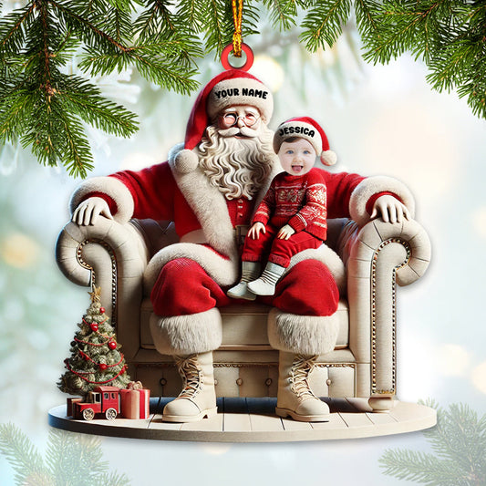 Custom Name and Photo Santa Ornament, Santa and Baby Christmas Ornament
