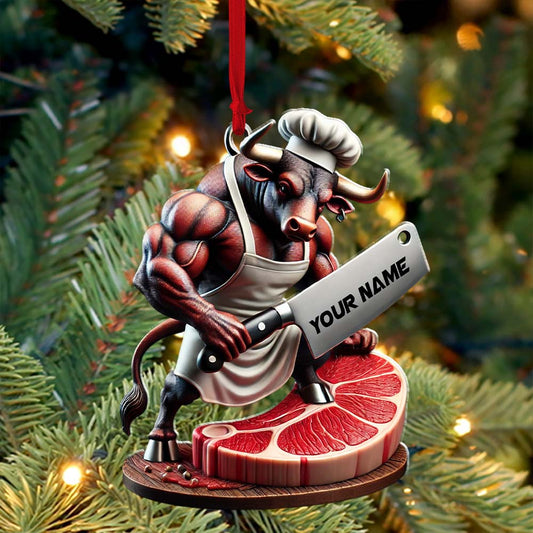 Custom Name Butcher Ornament, Butcher Shop Christmas Gift Decoration