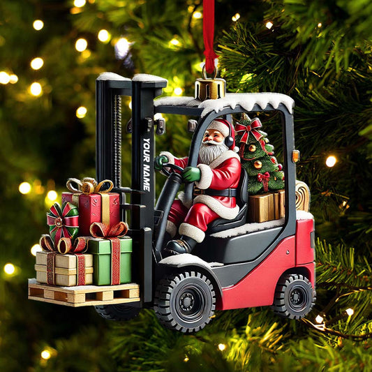 Custom Name Santa Forklift Ornament, Santa Christmas Gift Decoration