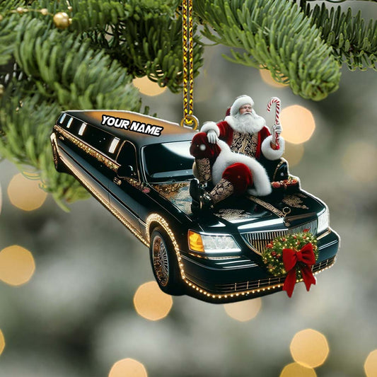 Custom Name Santa Limousine Ornament, Santa Christmas Gift Decoration