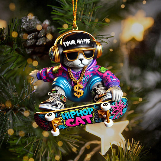 Hip Hop Cat Home Decor Christmas Ornament, Personalized Ornament
