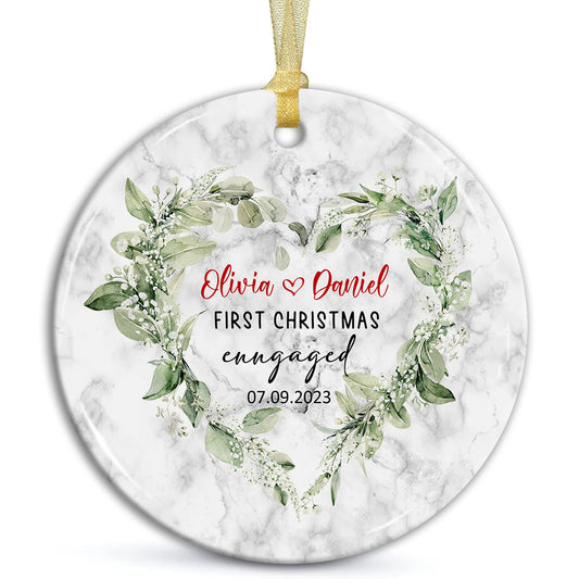 First Christmas Engaged - Personalized Christmas Ceramic Ornament - Gift For Couple, Family