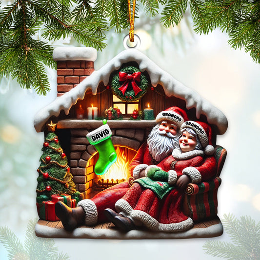 Custom Name Santa Couple and Kids Christmas Ornament, Family Christmas Gift