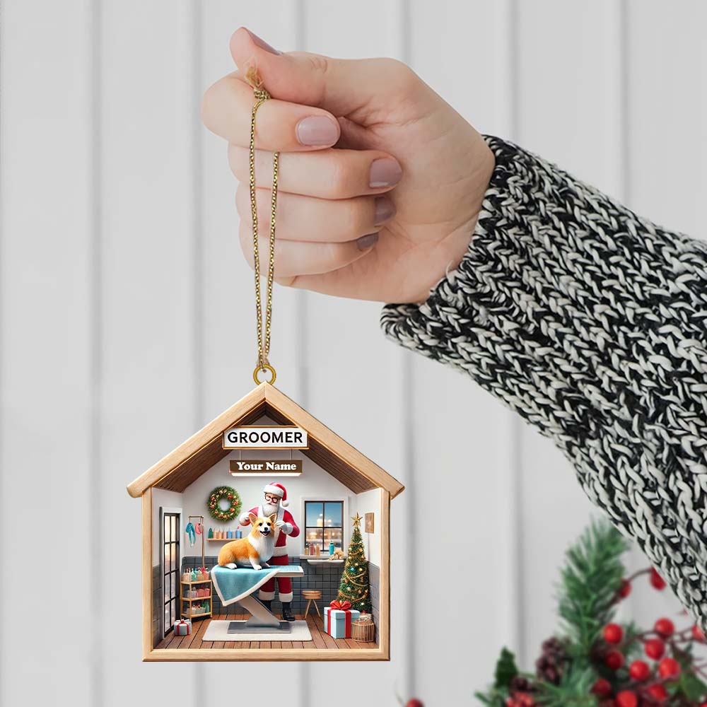 Custom Name Groomer Ornament, Christmas Decoration for Pet Shop