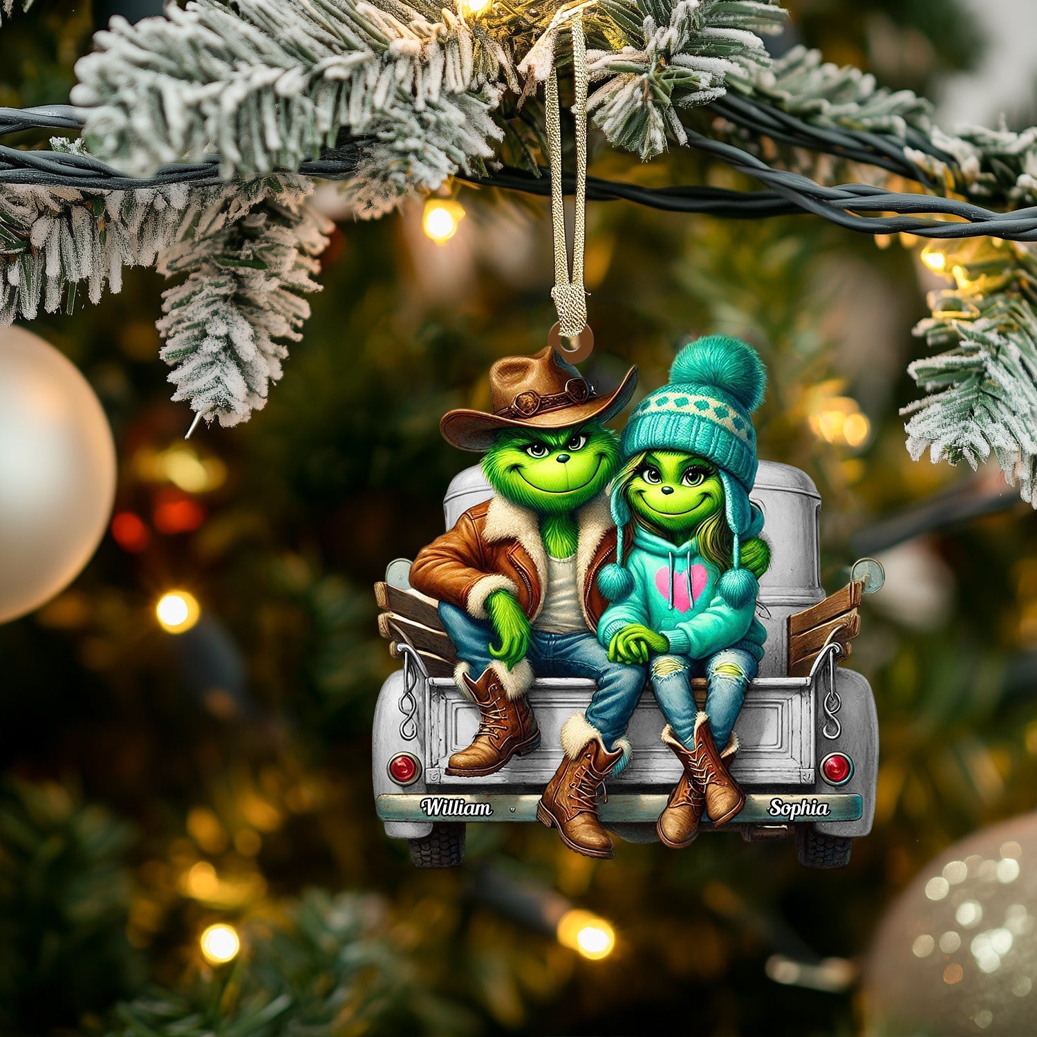 ELF Couple On Car Home Decor Christmas Ornament, Personalized Ornament